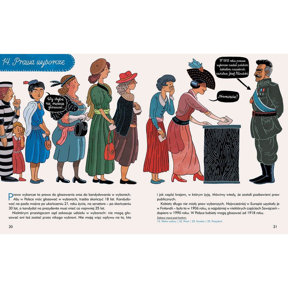 Wszystko wyjaśni wam ta książka! Przeczytacie w niej, jak polska demokracja działa dzisiaj, i poznacie jej historię. Dowiecie się, co jest zapisane w konstytucji, kto może głosować i po co są partie polityczne. Stanie się dla was jasne, co robi prezydent, a co premier, za co odpowiada sejm, a za co senat.