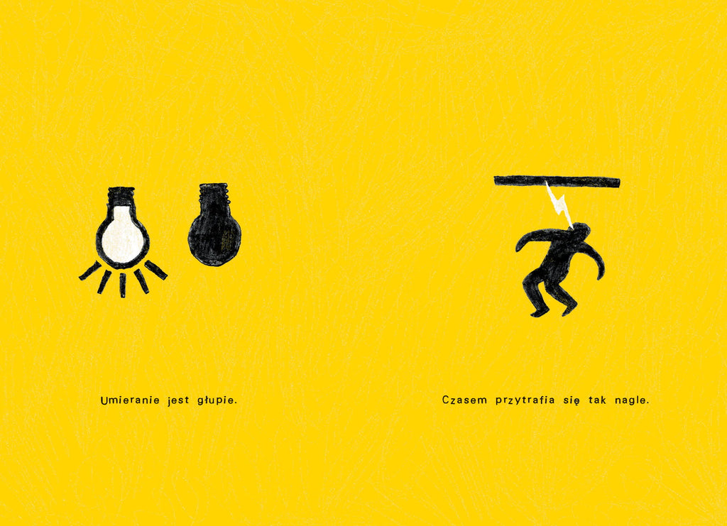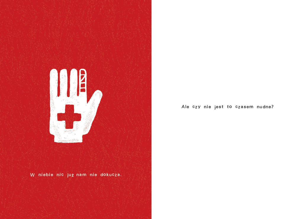 Głęboko poruszająca książka. O śmierci, o tym, że ktoś może umrzeć nagle. W "Niebie" to całkiem młody, bo 60-letni dziadziuś. Jego wnuczek usiłuje oswoić się z tą sytuacją i wyobrazić sobie miejsce, gdzie może teraz przebywać dziadek. Ta historia jest opowiedziana za pomocą znaków drogowych - dzięki nim chłopiec, bardzo tęskniący za dziadkiem, będzie wiedział w którym kierunku on powędrował. Nie chowajmy głowy w piasek, śmierć jest obecna, kiedy ktoś bliski odejdzie i dziecko potrzebuje wtedy wytłumaczenia. "Niebo" może mu w tym bardzo, a to bardzo pomóc.
