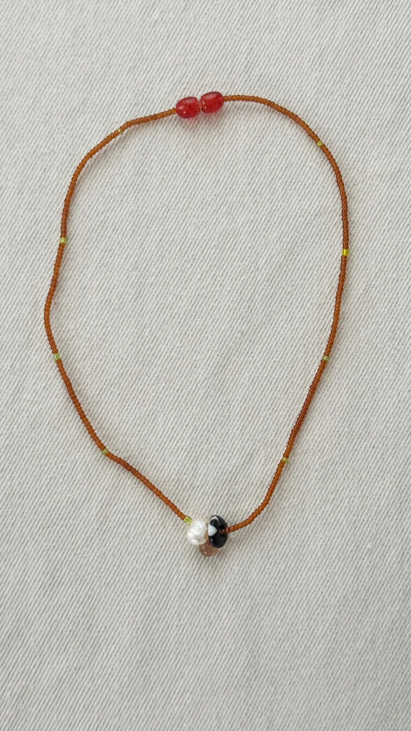 Naszyjnik Glass and Pearl Pendant Necklace brown