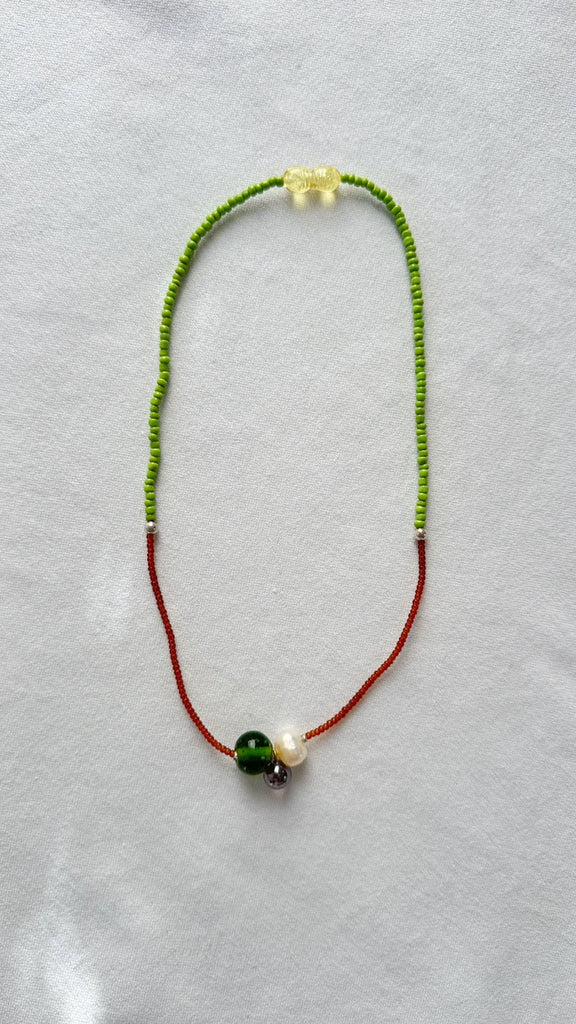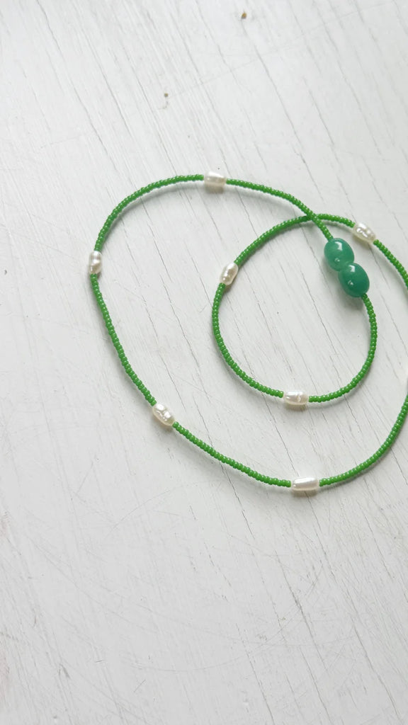 Naszyjnik Glass and Pearl Pendant Necklace green