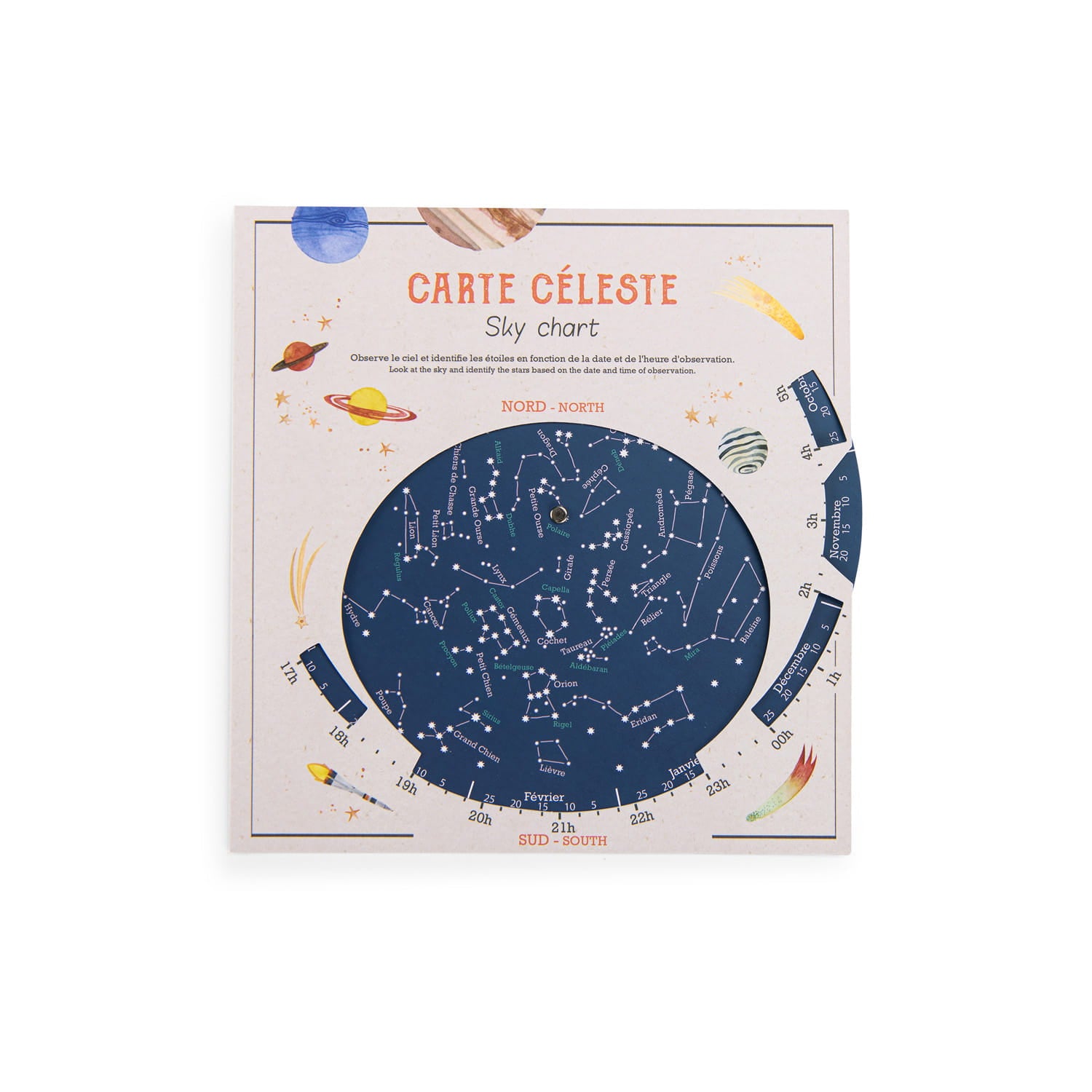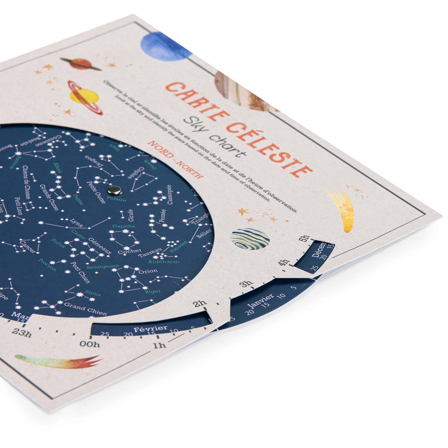 Na obrotowej mapie nieba odnajdziesz położenie gwiazd i konstelacji widocznych o danej godzinie i dniu roku.