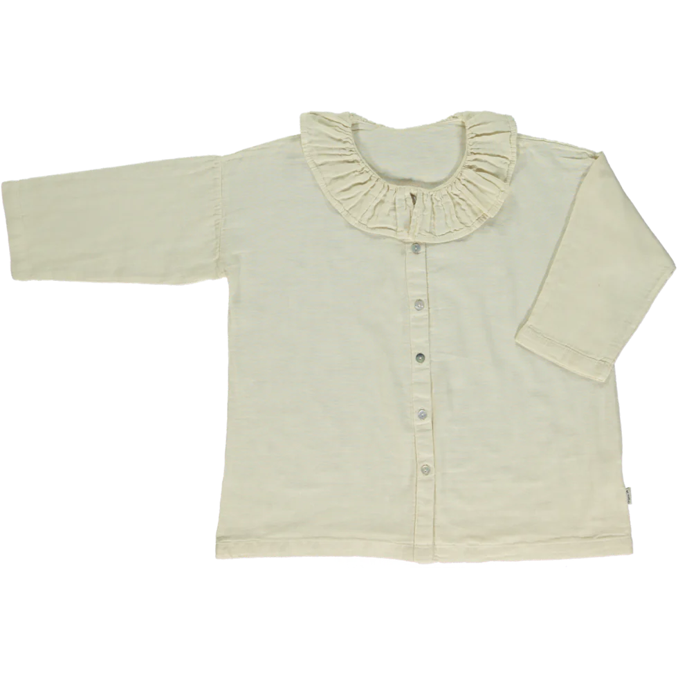 Bluzka z luźnym kołnierzem i rękawami 3/4. Wykonana w 100% z organicznej bawełny. Wyprodukowana w Portugalii.