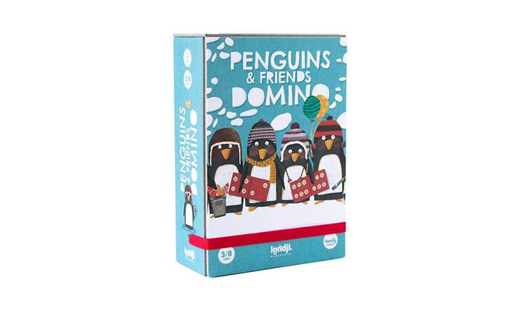 28 części klasycznego domina, układając klocki domina kropeczkami do dołu Twoje dziecko ułoży bajkowy rysunek z przyjaciółmi pingwinka.