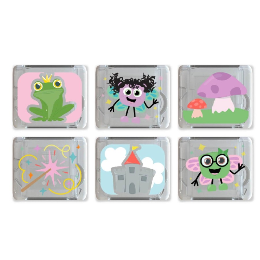 Wyrusz w magiczną podróż do świata rodem z bajki! Na każdej kostce czeka inny czarujący motyw – od uśmiechniętych wróżek, przez lśniący zamek ukryty wśród chmur, aż po migoczącą różdżkę, która potrafi odmienić każde zaklęcie w niezwykłą przygodę. To idealny zestaw dla dzieci kochających baśniowy klimat i kreatywną zabawę.