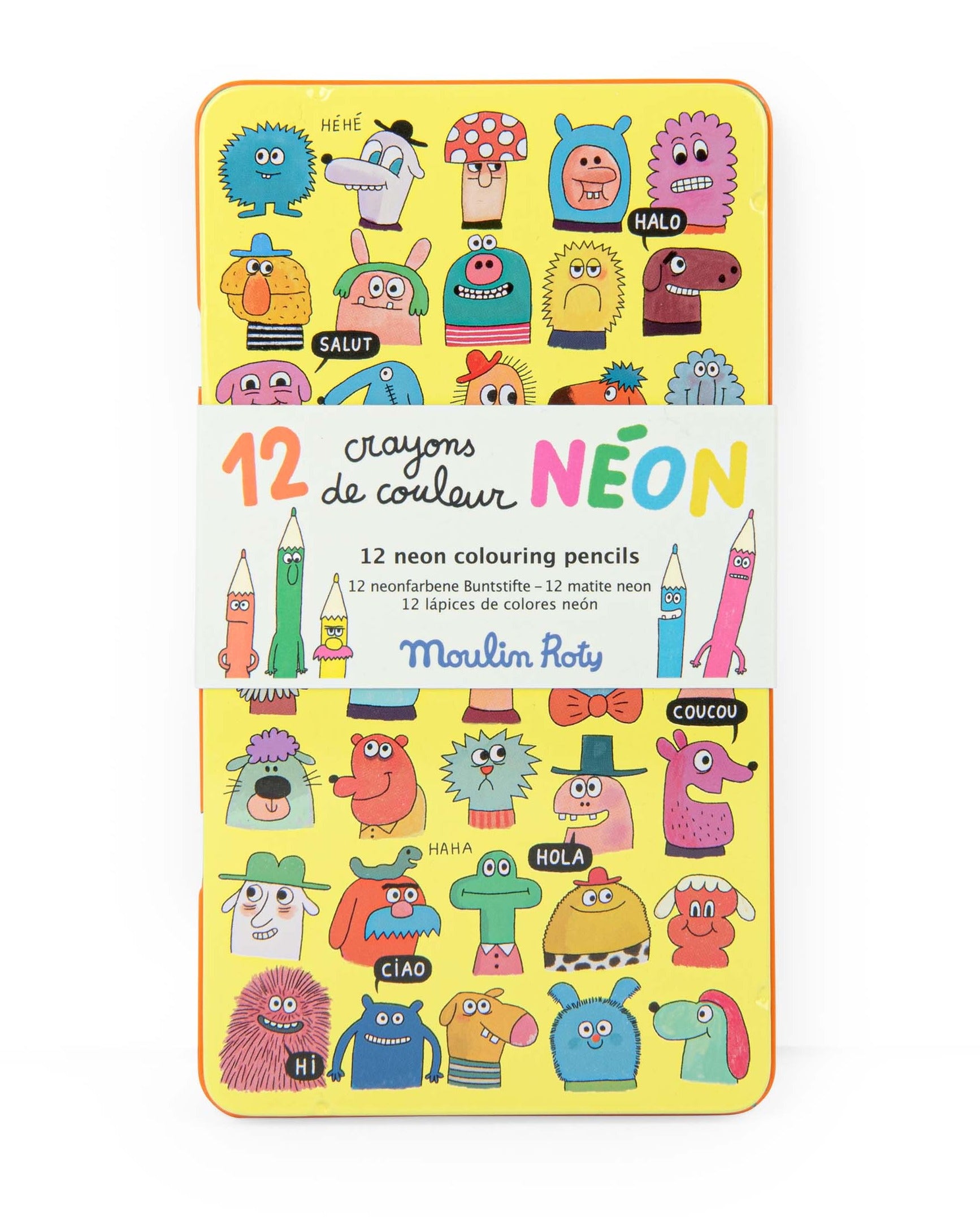 Zestaw 12 kredek o neonowych kolorach z kolekcji Les Schmouks. Zamknięte w pięknie ilustrowane, praktyczne metalowe pudełko. Autorką grafik jest twórczyni kolekcji Delphine Durand. Kredki o nietypowych odcieniach wyróżnią niejeden rysunek.