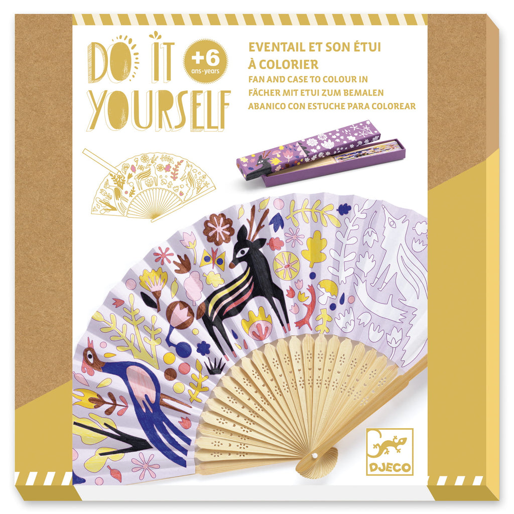 Zestaw do samodzielnego pokolorowania wachlarza oraz etui do jego przechowywania.